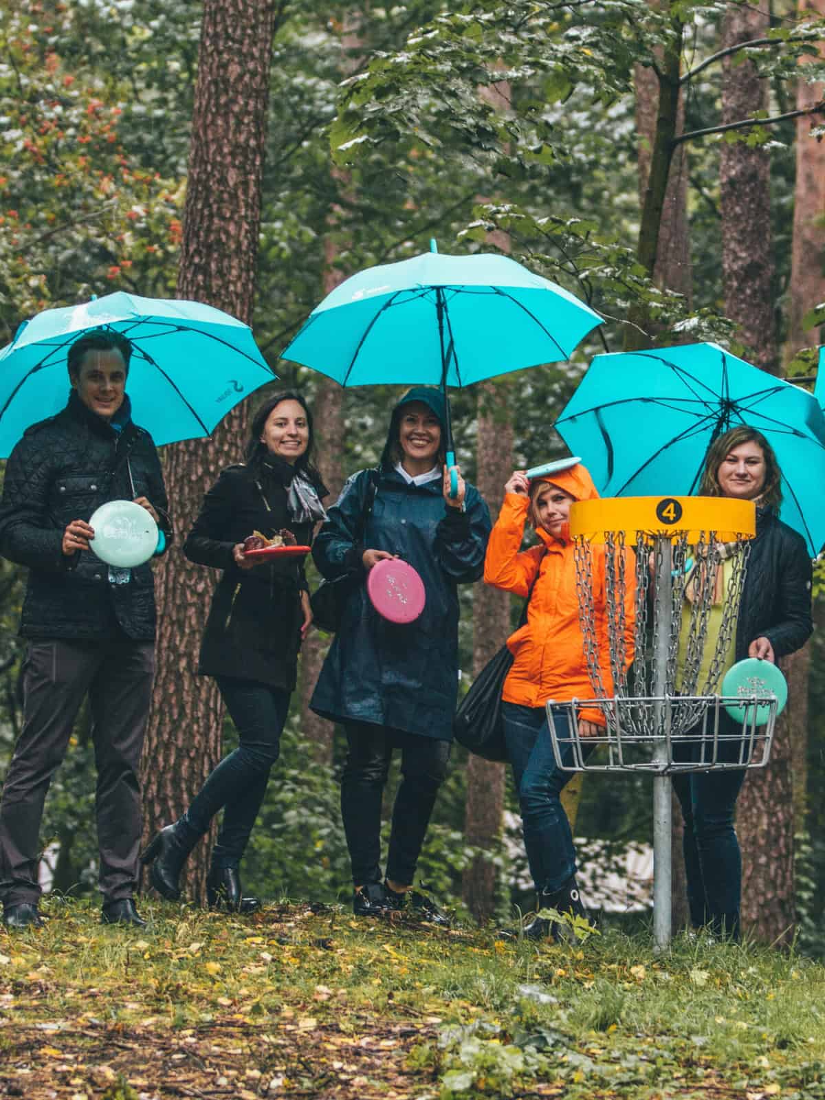 This is the perfect time for disc golf! When traditional team-building methods have become outdated, we step in. In disc golf, your team will create new adventures and memories, enjoying healthy and active time outdoors with plenty of smiles and without unnecessary effort. To ensure your disc golf event is a success, we have the resources to provide you with equipment, training, snacks, photographers, and fun contests. We will find a personalized solution for each team's needs – see you on the course!
